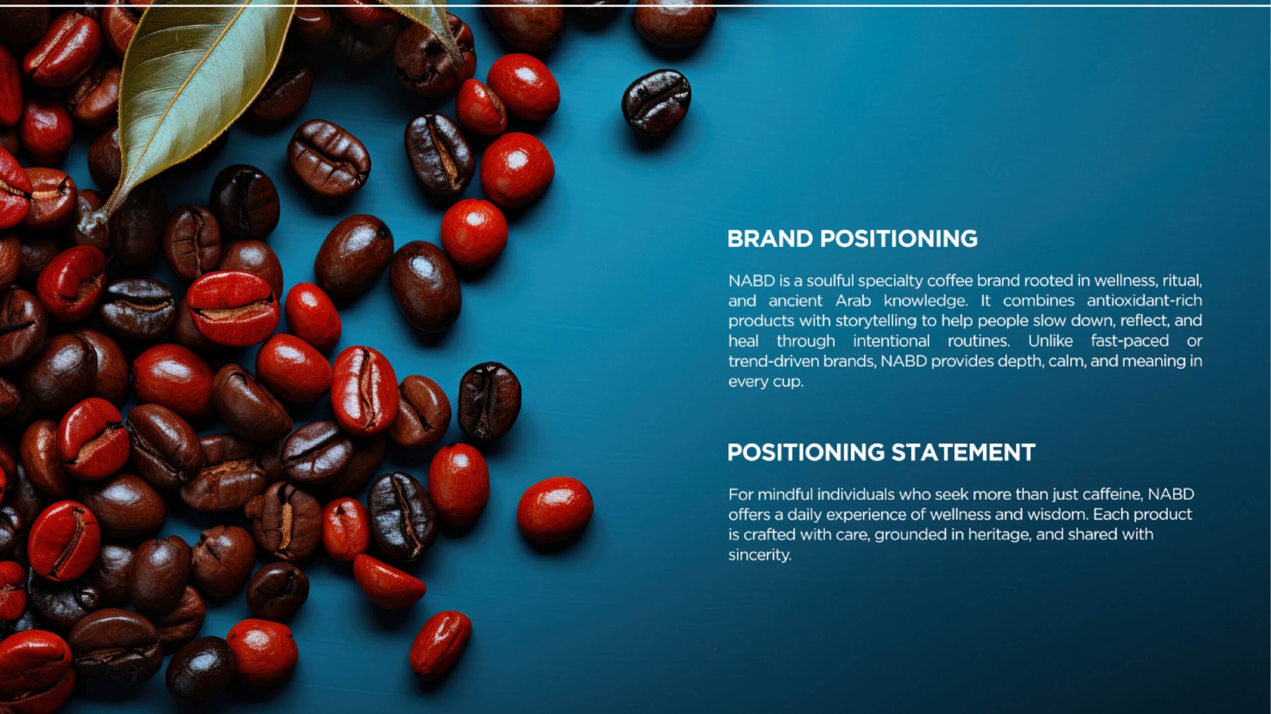 The Client – NABD (نبض), meaning “pulse” or “heartbeat” in Arabic, is a coffee brand that celebrates mindful living and balance. Built around the idea of “Wellness in Every Sip,” NABD offers more than just coffee. It embodies a lifestyle where every cup becomes a moment of calm, energy, and connection. With its name symbolizing rhythm and vitality, NABD reflects a heartbeat that inspires people to slow down, recharge, and enjoy coffee as part of their wellness journey.