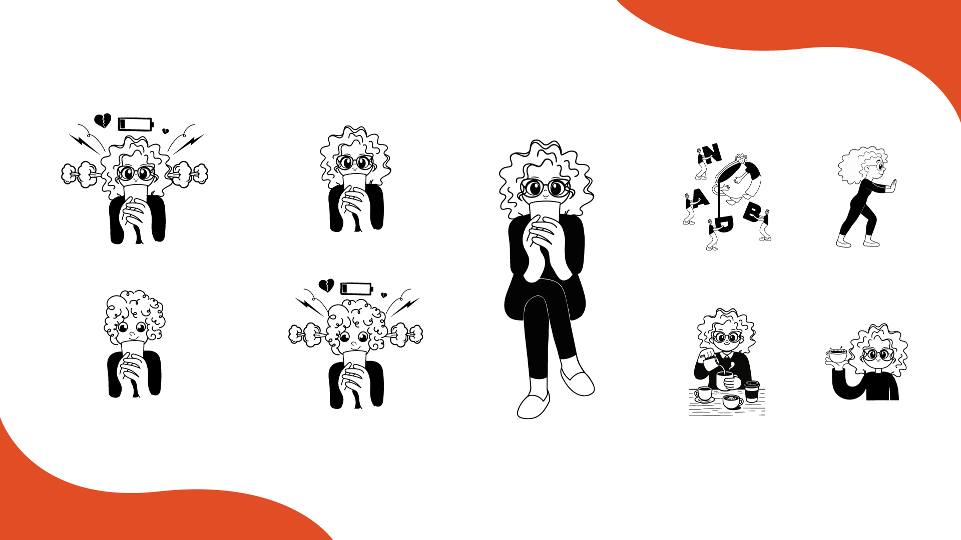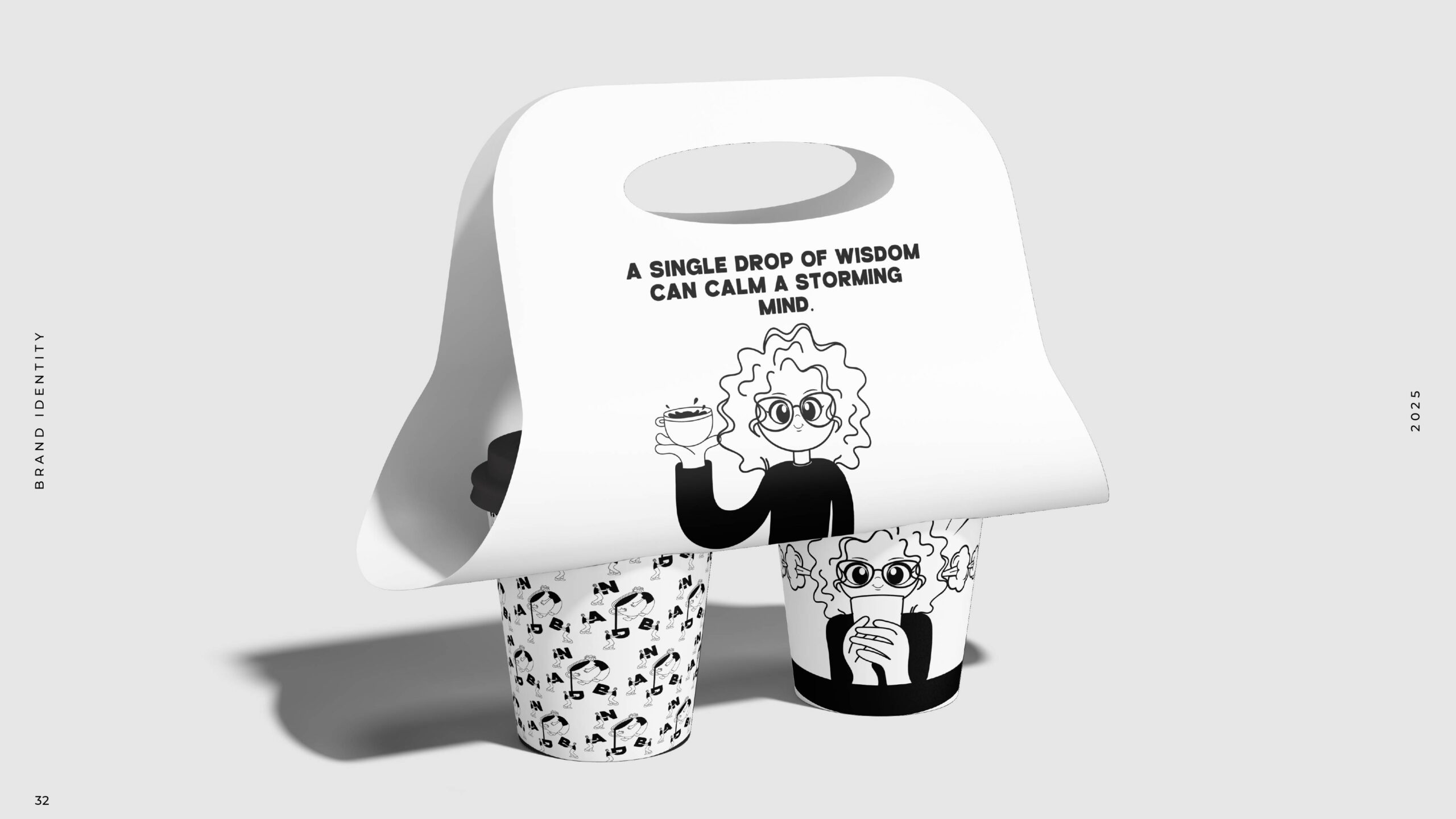 Main Task – This brand is not only about coffee; they also want to talk to their customers about overall well-being and mindfulness. They originally planned to add quotes to their packaging and branding to achieve this. After brainstorming with them, we came up with the idea of introducing illustrative characters as brand assets that can effectively communicate their quotes across all brand touchpoints.